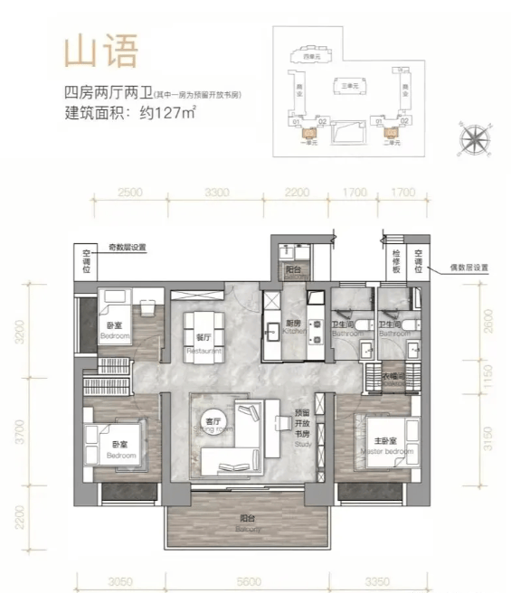 127-133㎡3房2卫1270-1380万单价10-10.6万