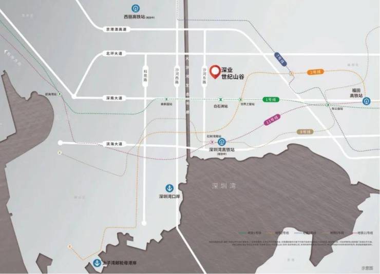 西侧紧邻沙河东路,直通深圳湾超级总部、后海总部基地为代表的深圳湾CBD。