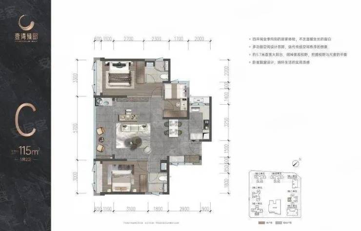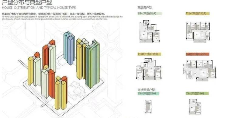 户型建面约98-115-151㎡ 3-4房,分别有2梯4户和2梯5户的设计,项目采用围合式建筑,共有7栋住宅。(具体以开发商公布为准)