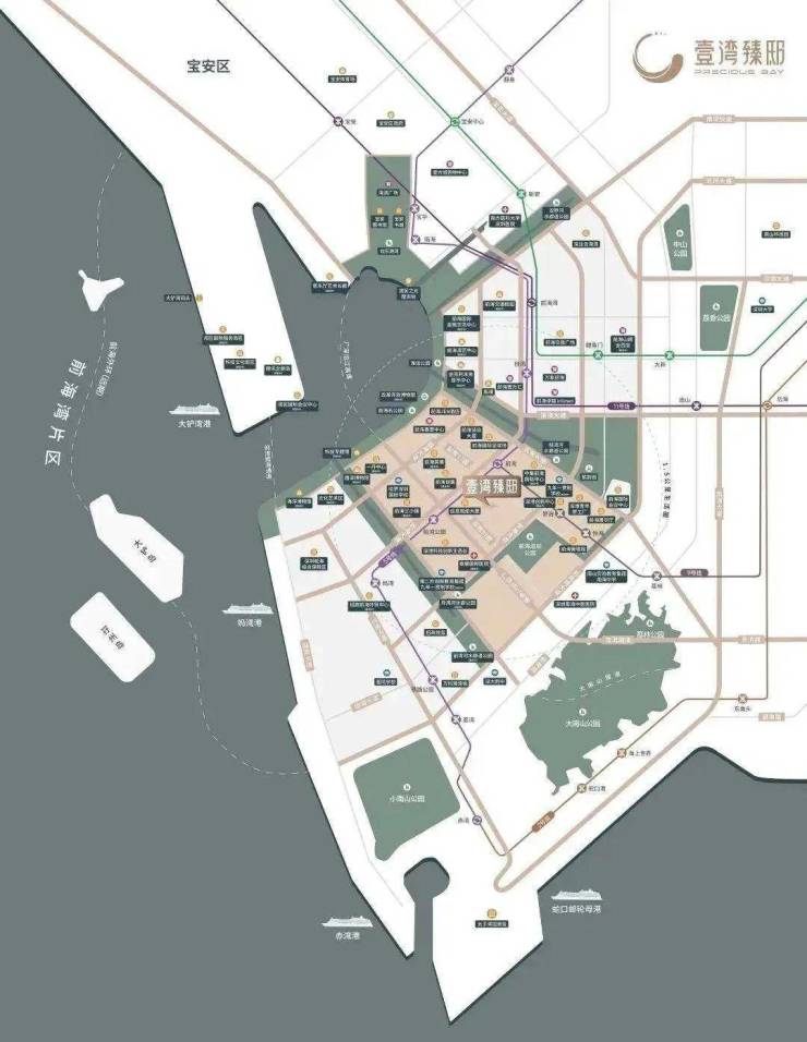 距离项目900米是在建的南二外前海教育集团(前湾学校)前期上学会在这所学校,国际学校有哈罗公学项目位于前湾二路和听海大道,靠近 地铁5号线 “前湾站” 和 “前湾公园站”、前海运动公园 等,国深博物馆 也在不远处。此外,项目离海边的距离相近,高层有望看海,成为海景房(不过随着周边建筑的建设,大概率后期还是不会有海景)宗地图