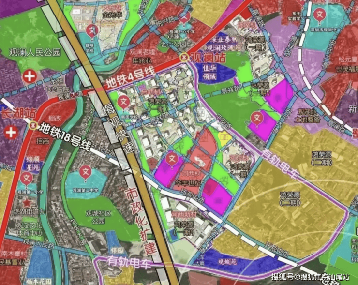 鸿荣源观城项目位于龙华观澜,毗邻地铁4号线观澜站,西侧临梅观高速,已经公示的规划总占地约81万㎡,规划总建面约410万㎡(规划建设9674套商品住宅,2506套保障房),体量超过壹成中心(320万)和珈誉府(248万),堪称目前深圳在建的旧改巨无霸。