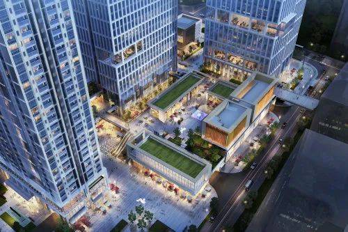 项目在场景打造上,综合“公共广场”、“商业内街”、“创意聚落”、“架空花园”、“露台花园”、“二层连廊”、“空中花园”形成多维度的共享公共空间,营造丰富的城市空间体验。