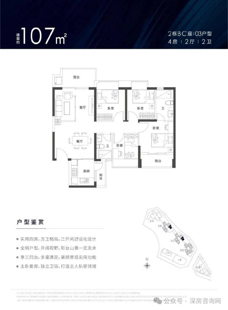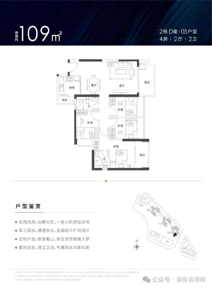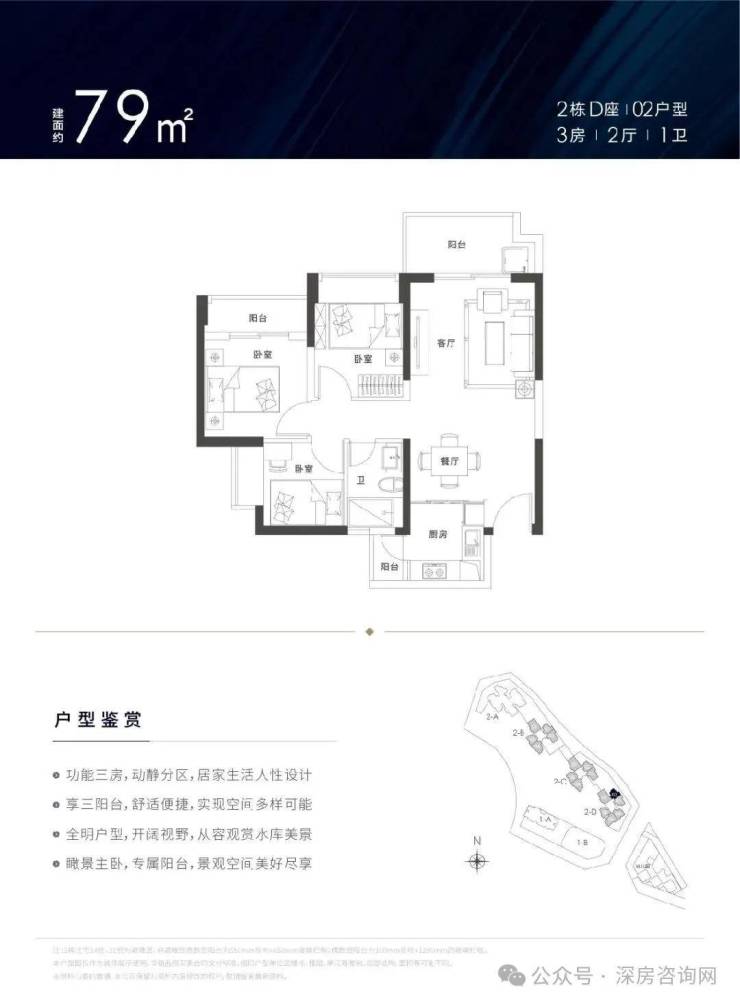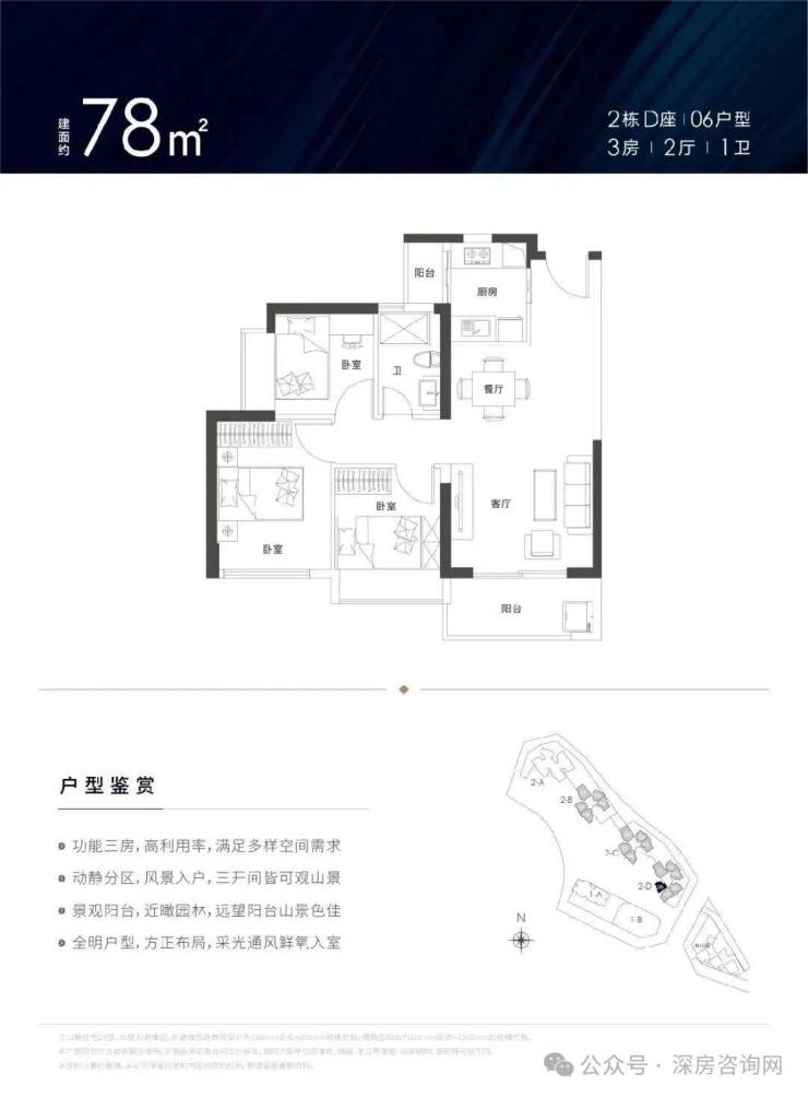 锦顺名居打造约78-129㎡3-4房,实用率超高,户型方正,南北通透。设计有主卧、客厅、厨房三阳台,拥有超大景观面,居家即可观九龙山、阳台山、茜坑水库、大浪水库等天然生态美景。