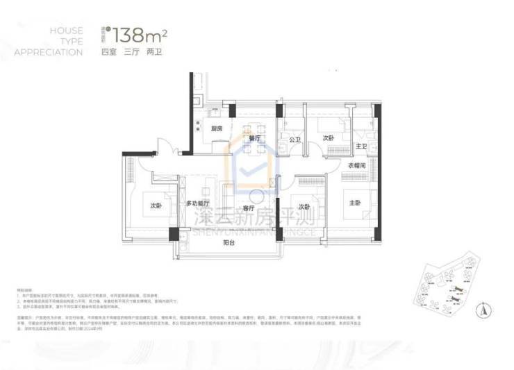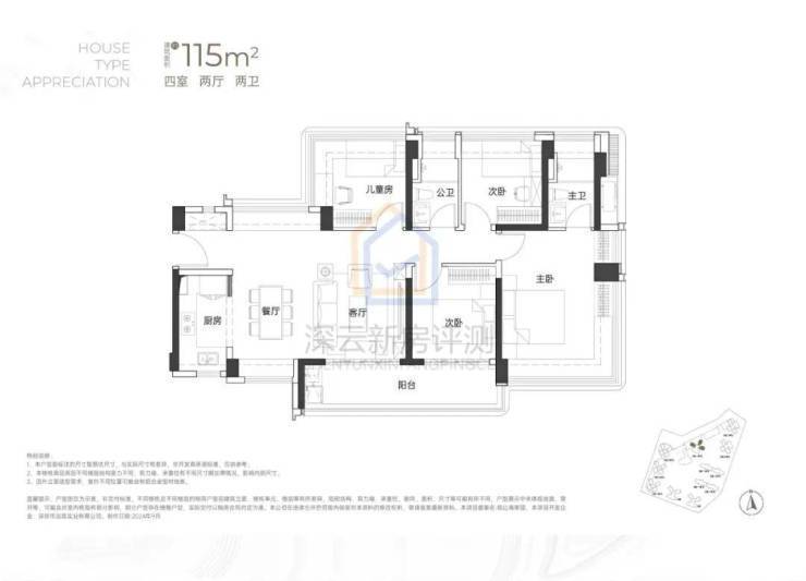 小区总共规划了870户,均为商品房,无回迁、保障房等,车位配比987个,梯户比2T4户、2T5户、2T2户都有。推售面积95㎡3房、108-110㎡4房、113-115㎡4房以及138㎡4房。