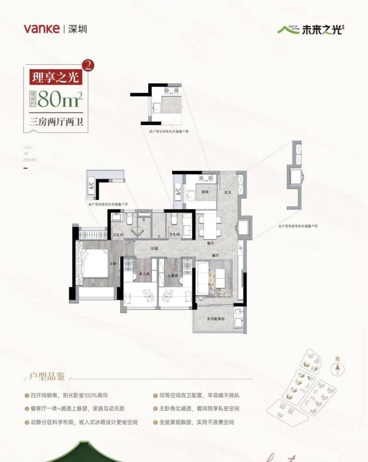 80㎡三房两卫【498万起】全南无敌山景或南北通透