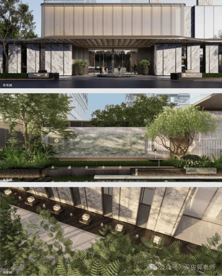 南洋风情园林,打造高奢归家礼序!园林架空层及大堂完全是南山香格里拉同款风格,长57米的门厅,奢石铺地,去年位于深圳湾超总的“深湾玖序”刷爆了深圳的豪宅市场