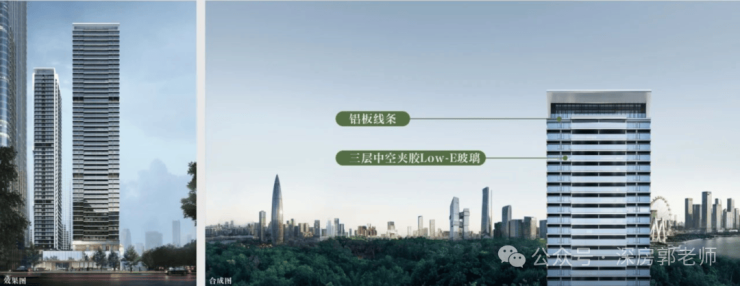 外立面材料采用精选的三层中空夹胶low-e玻璃和铝板线条,高定豪华国际一线品牌YKKAP 全卧室系统窗等,该品牌国际豪宅御用配置,对气密、水密、隔音效果绝佳,标准的豪宅配置。