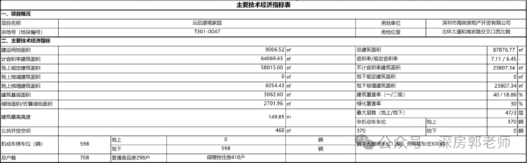 项目土地来源于润亚奕拓厂房旧改。小区占地面积仅9006.52平米,共 3 栋住宅楼,其中2栋21-47层商品房住宅、1 栋 46层保障房。总户数708户,普通商品房298户,保障性住房410户