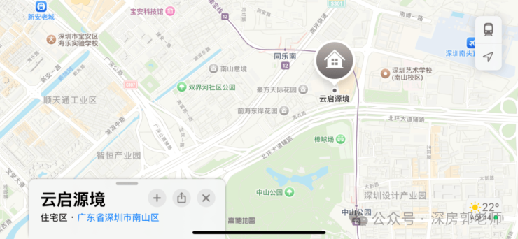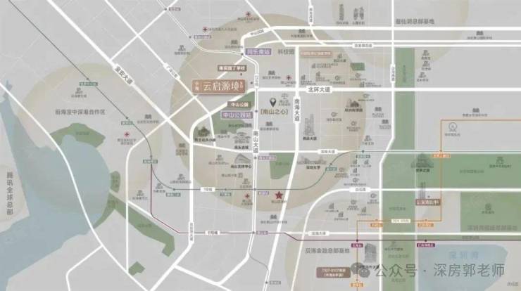 【中海云启源境】位于深圳市南山区北环大道北面、南农路西面,南实园丁学校旁。项目距离地铁 12 号线同乐南站直线约 400 米。