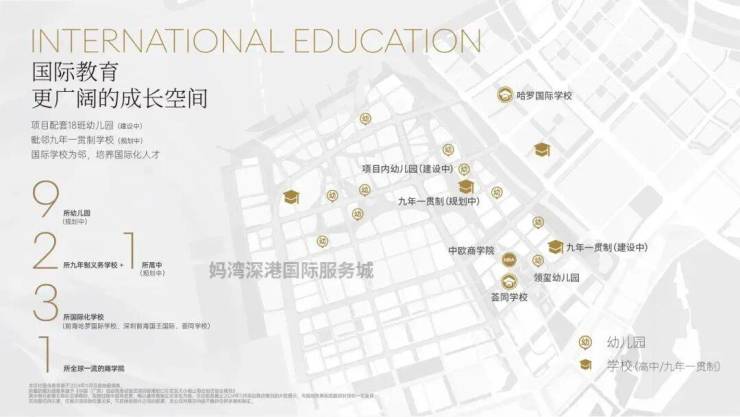 教育方面,项目自带12班幼儿园,旁边规划了九年一贯制学校(网传是南二外妈湾学校)。