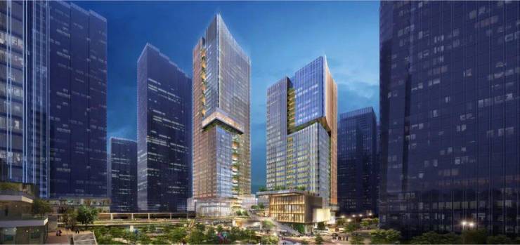 前海周大福金融大厦项目总占地面积约为18,218.36平方米,总建筑面积约245,038平方米,其中地上建筑面积170,000平方米,将建设成楼高约220米及120米的地标式双子塔办公楼,以商业、艺术展览、绿化公园、表演场地、海景资源等为配套。
