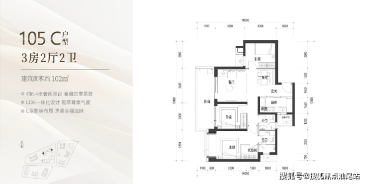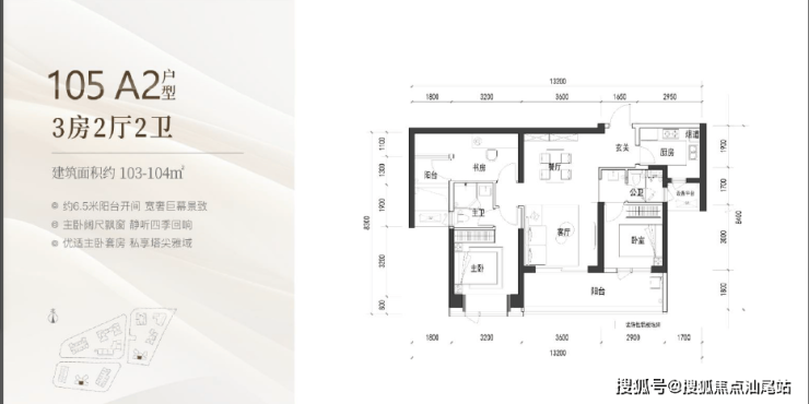 本次首推的 02 地块 105 ㎡产品有 4 条腿,户型有这个双龙抱珠的,还有一个户型是竖厅格局,各有优势,看个人喜好选择。