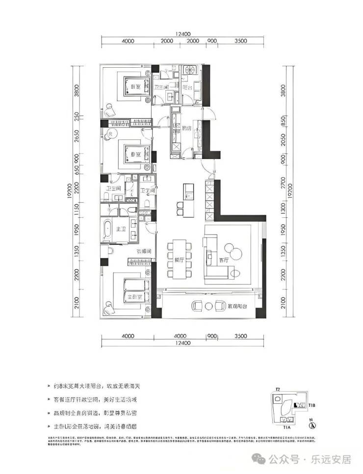 采用双龙抱珠户型设计,户型方正实用。双套房朝南,可赏南向一线海景,配备广角视野景观阳台。