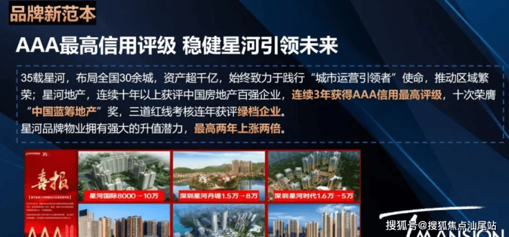 【品牌新范本】35载星河,布局全国30余城,资产超千亿,连续3年获评AAA最高信用评级,全国绿档房企,稳健星河。