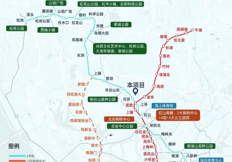 未来3站与地铁13号线(规划中)接驳,将串联留仙洞总部基地/南山科技园等深圳最牛的核心商务区以及连接深圳北站/西丽综合交通枢纽两大交通枢纽;