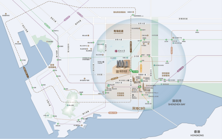 【翰熙典居】占位深圳经济命脉滨海大道与南北科创主轴南海大道交汇处十字轴心,是粤海街道的核心区域。这里集萃了城市区位、科创、人文、TOD四大中心源点,依托两大科技园、四大总部基地,集总部经济与全球科创中心价值于一身,坐享区域发展利好。项目无缝接驳地铁9号线、15号线(在建中)交汇的深大南站,四横三纵的主干道网络以及双城际铁路和海空交通网络环绕,让您无论是前往市中心还是其他区域,都能高效畅达,轻松连接全城。