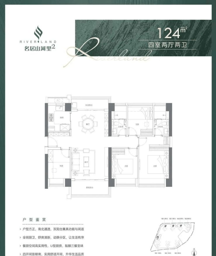 124平4房2厅2卫:南北通透,不含赠送使用率在74%