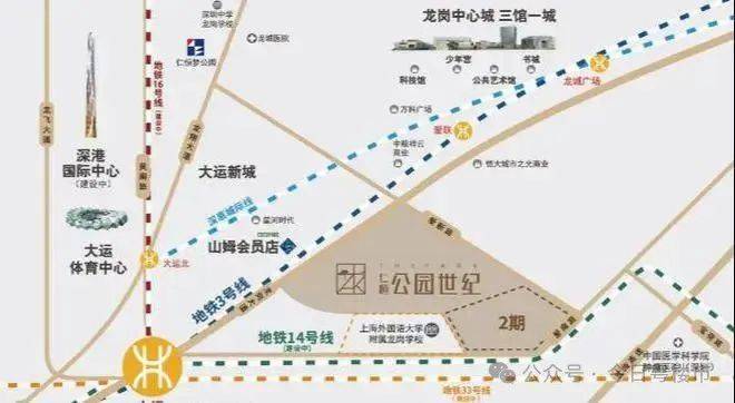【大运枢纽站】规划4轨与此交汇。3-14-16号线(已开通)33号线(建设中中6站直达机场),乘坐14号线可8站至福田,实现龙岗与福田快速通达。