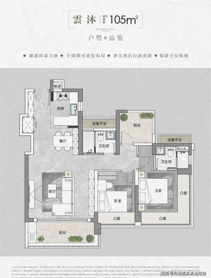 1栋一座商品房约150米,47层,3梯5户,共计207套,目前还剩余几十套,持续热销中,而即将推出的1栋二座商品房约70米,21层,2梯5户,共计90套,约90-105㎡产品。本次推售的产品属于新规设计,据说综合得房率达到95%左右。
