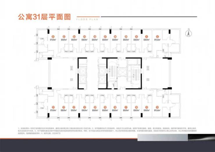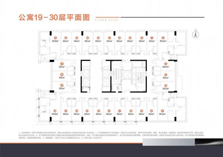 约30-93㎡商务公寓(3.6米高):19F-31F,4+1(消防)梯28户