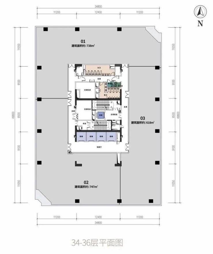 标准层面积:约2100-2155㎡