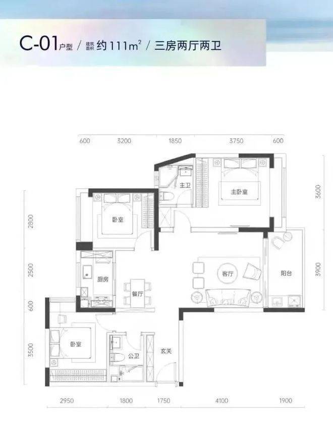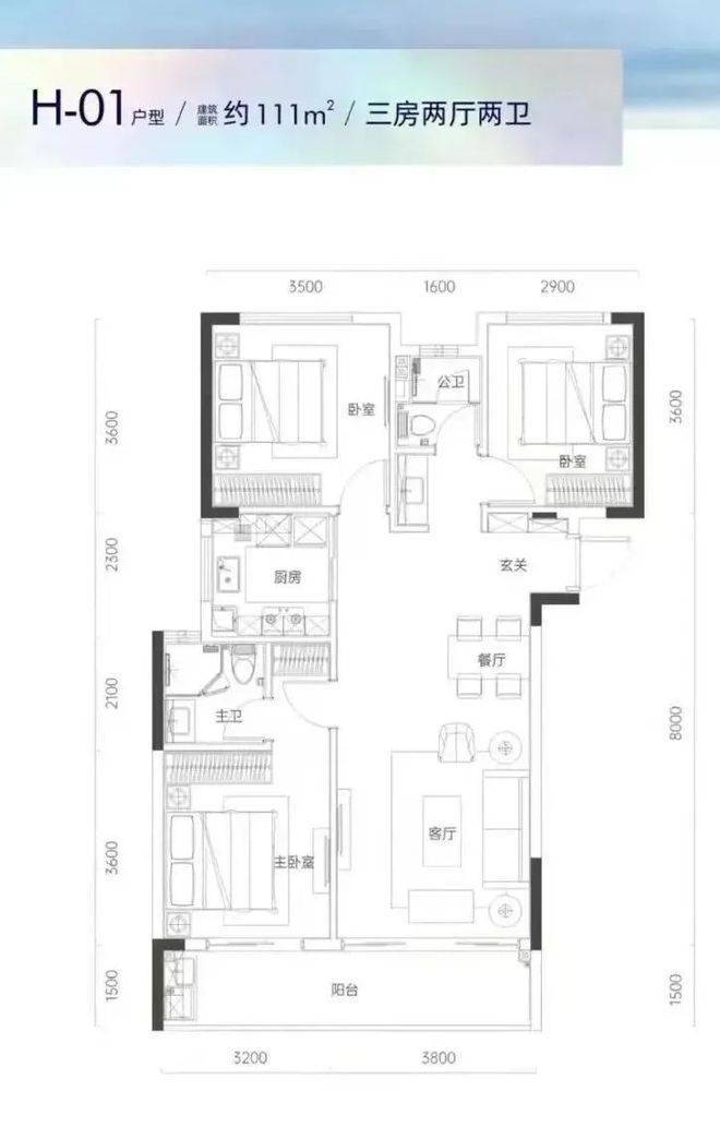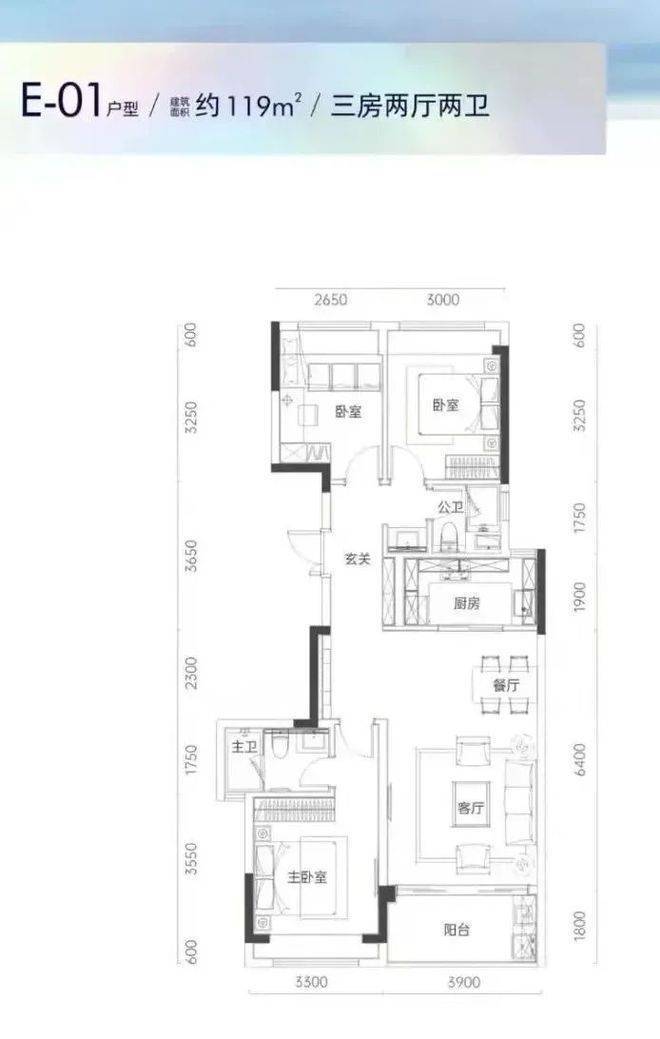 ——3.9m宽的开间,采光面好;阳台进深1.8m(常规阳台1.5m),阳台活动空间大