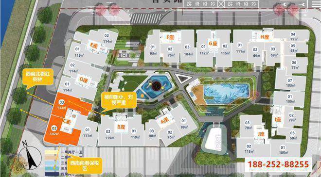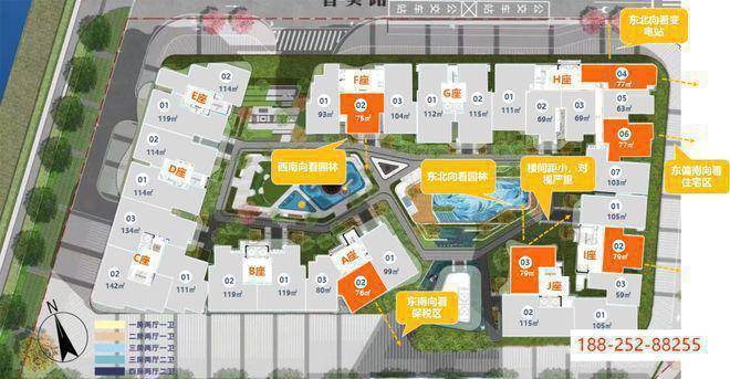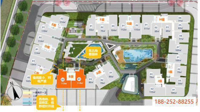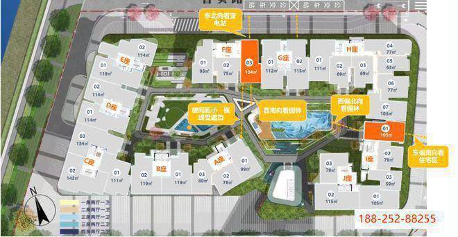 户型选择上:H座一层7户,且都是小户型,居住上感受最差;A座最好,是一层2户;F/J座都是一层3户;再综合考虑对视情况,户型选择综合排序