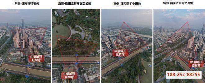 项目东侧是住宅红树福苑等、西侧是红树林生态公园,无遮挡的一线景观;南侧是保税区工业用地,内有CASIO、飞利浦、信息科技中心等,楼层低矮;北侧是福田区供电站用地,目前无遮挡。