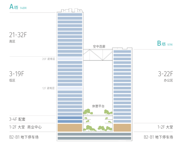 办公租赁楼层:A塔-低区3F-19F;高区21F-32F