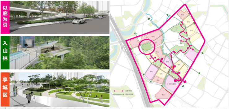 🛣 项目内通过二层连廊打造,构建「空中+地上+地下」三重立体交通,最大程度实现人车分流,宜然&效率兼顾。