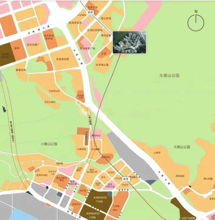 在区位上,项目毗邻大南山,属于南山中心区荔湾板块,靠近前海妈湾片区和蛇口片区;附近有妈湾在售的万科瑧湾悦价格在10.5万,以及即将入市新盘有妈湾的前海招商臻玺预计在10万左右,项目这两个项目观山海花园并不在妈湾核心位置,属于比较边缘地界了,后面入市大概率价格方便也会稍微比较低一些,项目相比于这两个小区优势在于景观背山面海以及大社区花园。