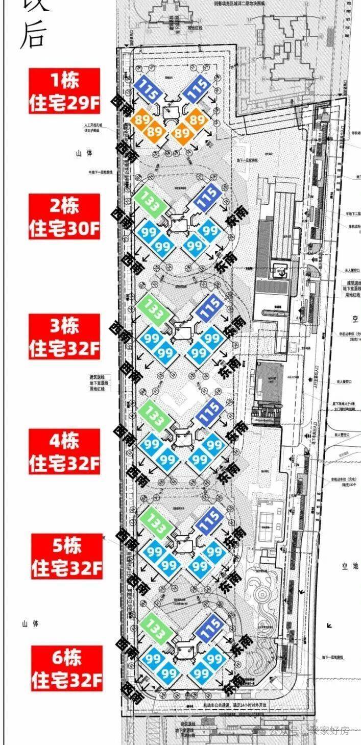 乐城3期,由颐安集团打造,总占地面积约2.9万㎡,总建筑面积约17.11万㎡,计容建筑面积约12.29万㎡,容积率4.05,绿化率40%,共由6栋29-32层高住宅组成,其中1栋住宅29F,2栋住宅30F,3-6栋住宅32F。总规划1086户,全部3梯6户设计,户户朝南,地下室有3层,规划1116个车位,车位比1:1.02。