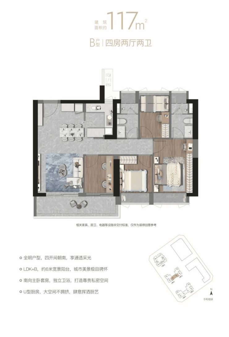 “南向全明四房LDK+B”设计,宽景阳台,拥揽四季