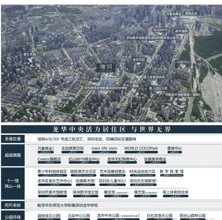 项目位于龙华民治街道上塘,地处深圳几何中心,占位湾区中轴核心。随着2022年深圳都市核心区扩容,民治街道纳入都市核心区,成为与福田-罗湖中心、南山-前海中心并列的深圳第三都市核心区,“数字龙华、都市核心”多重站位部署,龙华未来将建成新一代高密度、高质量、高品质都市核心区。