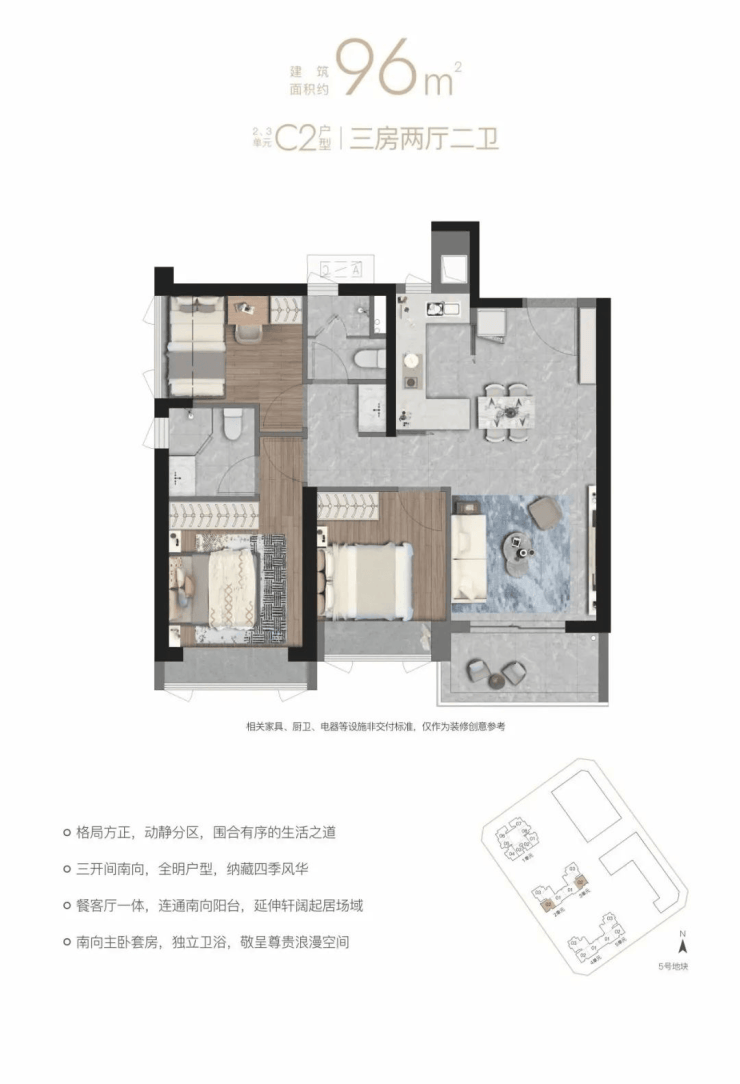 【C2户型96㎡三房两厅两卫】