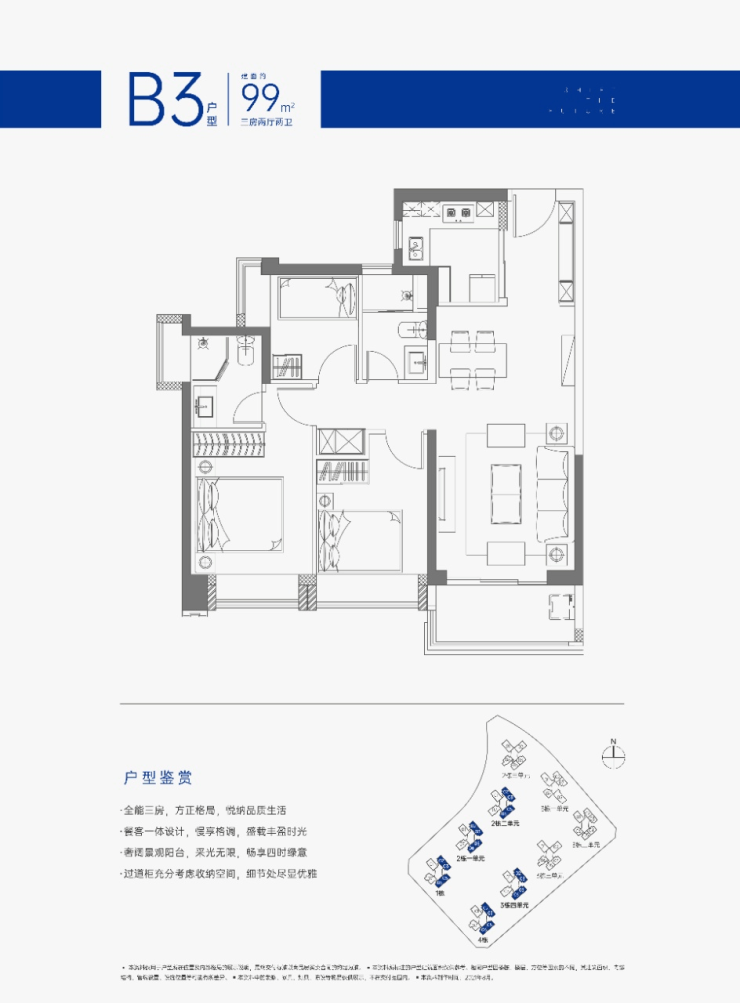 ——户型鉴赏——【B3户型】约99㎡三房两厅两卫