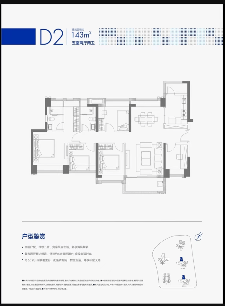 【D2户型】约143㎡五房两厅2卫