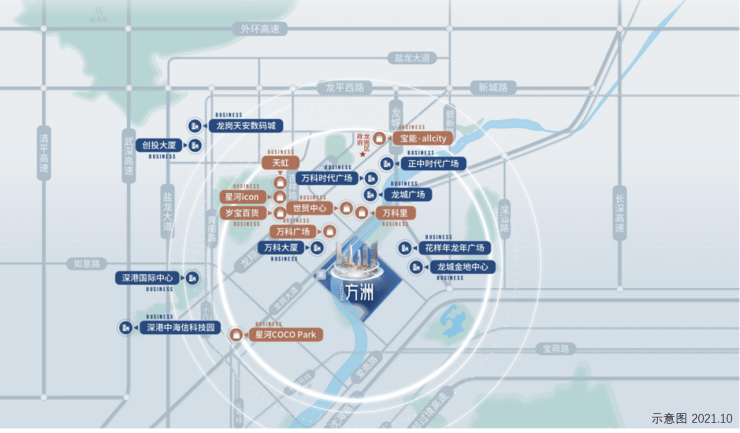 ——项目价值点——【项目价值】· 龙岗核心CBD 都会繁华主场合正方洲坐落于龙岗中央CBD区域,近区政府、区级行政事业单位,享“三馆一城”文化配套。驾车10分钟可达大运中心、深圳露台、国际大学城等,直接享受高端文体配套、最具人文氛围和国际视野的硬核配套,拥揽都心一线繁华。