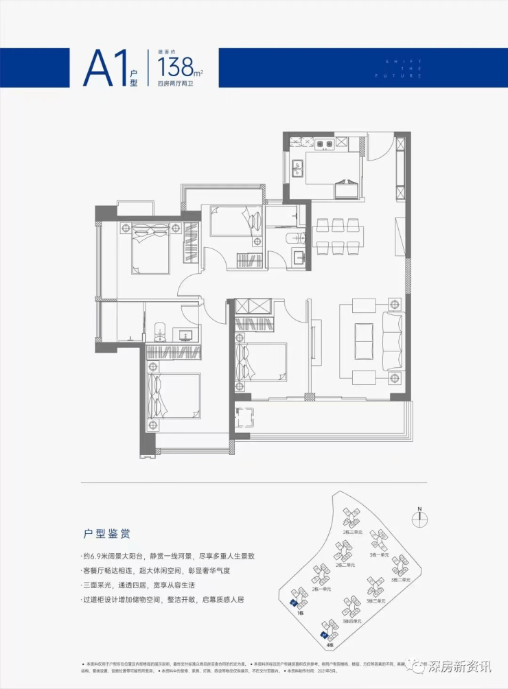 【A1户型】约138㎡四房两厅两卫