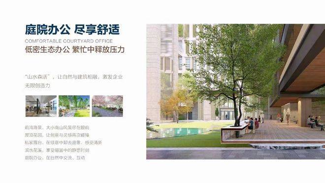 项目采用低密度的庭院式设计,在屋顶花园、私家露台、滨水花溪等地办公。