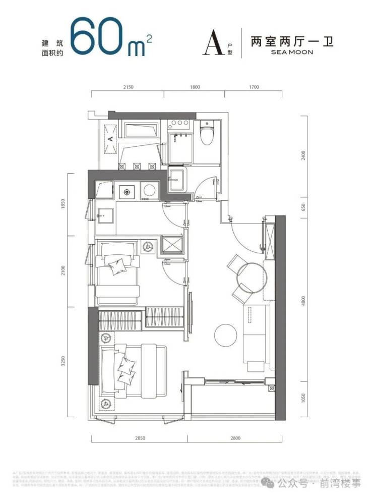 “望海玥”项目首批389套公寓,35层高,户型36-60㎡,1-2房,精装修。