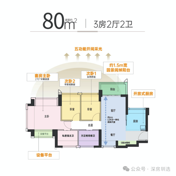 大主卧270度环幕采光,3面环景通透舒适