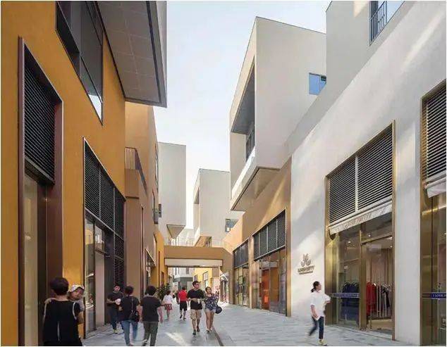 店铺外立面以红、橙、黄色等暖色调,与蓝天白云相得益彰,并与整个Loft灰白建筑形成对比,提升商业空间视觉感。线条流畅简洁,空间开阔,如同置身于纽约或伦敦的SOHO区,既是对集市型商业精神的回归,也迎合了当代都市人对个性化的需求。