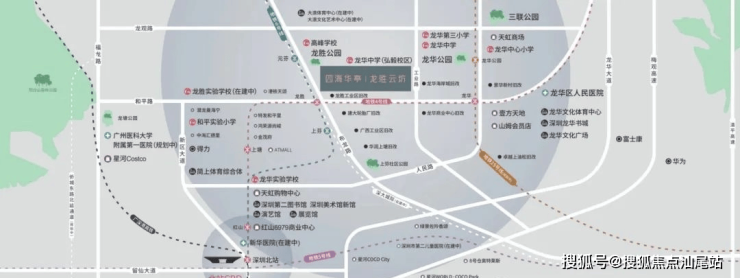 •百年高峰学校(龙华区公立四大、十大录取率排名前三)、龙华中学弘毅校区(广东省一级)、龙华中学中心校区(广东省一级)、龙华第三小学(公办32班小学)、项目配建幼儿园等
