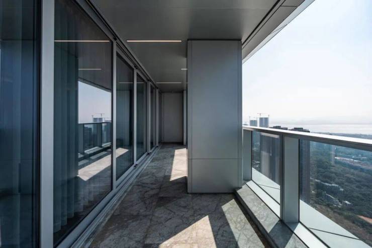 高端居住:36-57层为云端居住区,提供140-880㎡多种户型,以大平层和复式为主,部分户型带超大阳台,可俯瞰山海城景观。