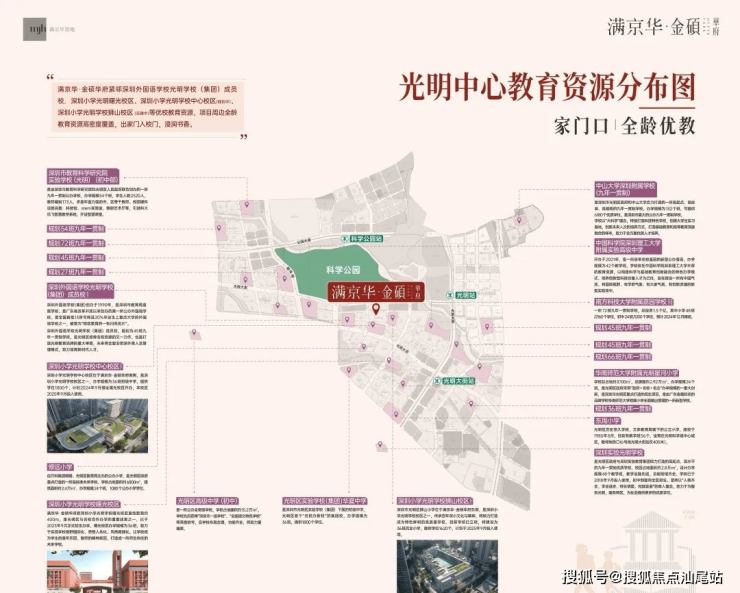 满京华·金硕项目直面占地约208万㎡的科学公园(在建中),近享深圳国际美术馆(在建中)、深圳科技馆新馆(在建中)、科学城体育中心(在建中)、光明文化艺术中心等市级文体配套;还坐拥狮山公园、约9.4万㎡的东周文化公园,约10万㎡的开明公园,约56万㎡的新城公园等丰富绿色生态资源。