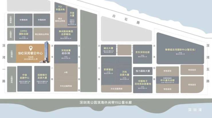 深圳湾超级总部基地由政府亲力运营,须是世界500强、中国200强的企业方可入驻。截至目前,确定入驻的企业总部已达16 家,其中多家已破土动工或封顶,预计2027年整体投入运营。