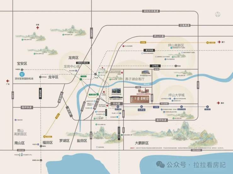 2城轨:深大城际坪山站约4KM(在建中)、近深惠城际大鹏支线,通达大湾区。