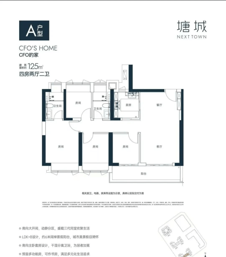 “南向全明四房LDK+B”设计,宽景阳台,拥揽四季