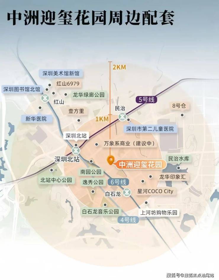 项目原中洲黄金台,定名为中洲迎玺花园,位于龙华民治街道,西北毗邻中海珑悦理家园,东北毗邻超核中心润府。